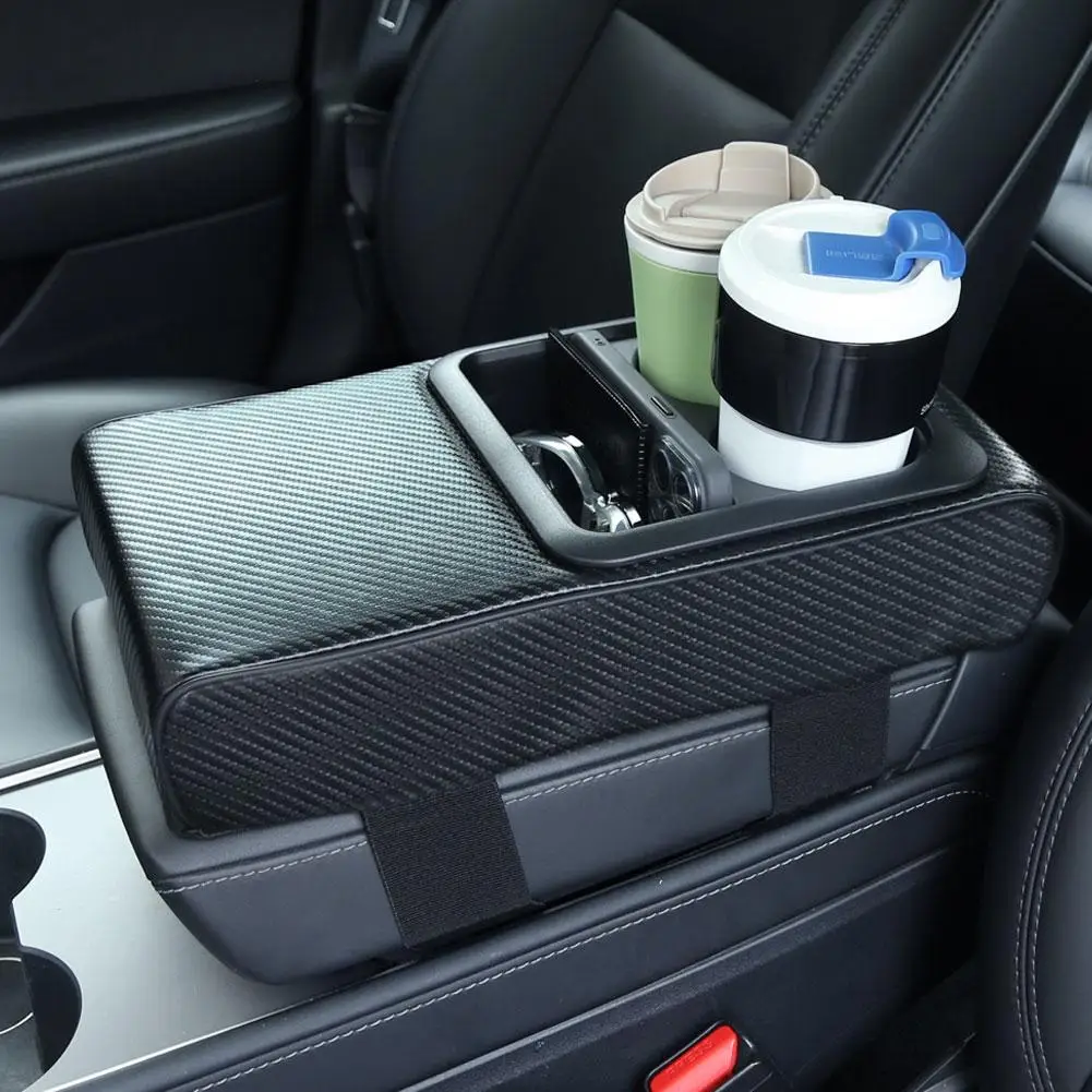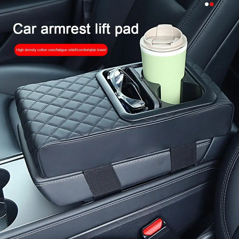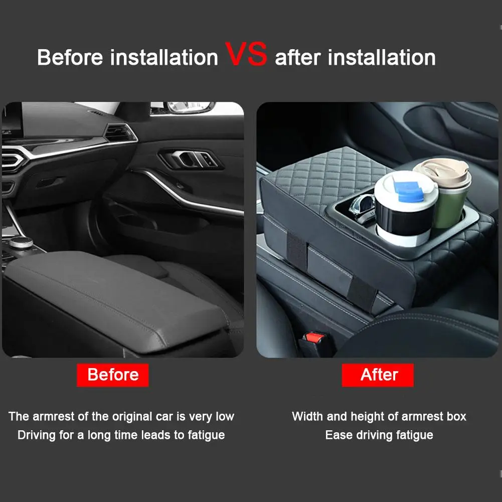 Auto Center Console Armrest Cushion with 2 Cup Holder Armrest Amrest Car Leather Portable Pad Cover PU Height Pad Pillow D4Z1